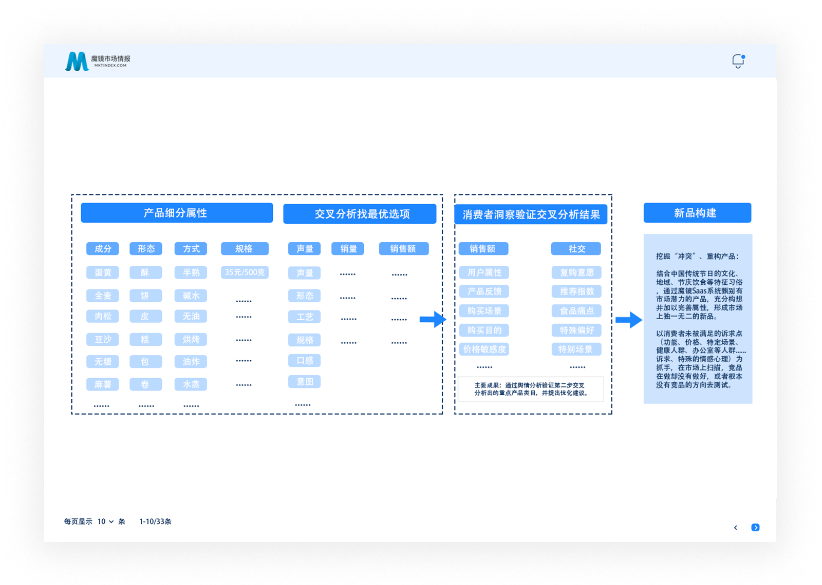 通过不同成分在各细分市场的销售趋势变化,助力品牌开发与核心单品关联度较高的产品,延展产品宽度